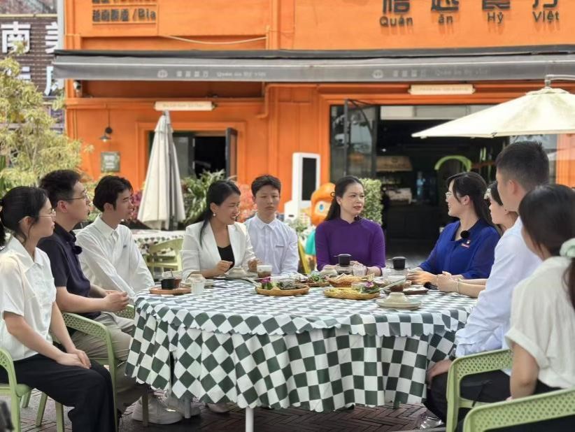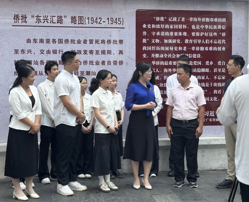 第三站,师生走访了禧越餐厅、国门街、侨批馆。bevictor伟德官网冯舒讌老师以《国门下的繁荣——中越命运共同体》为主题,带领大家与餐厅经营者、商铺售货员、展馆讲解员进行深入交流。在禧越餐厅,餐厅主人热情地与我们分享了中越饮食文化交融的故事;在国门街,经营者们忙碌的身影展现着边境贸易的繁荣景象;在侨批馆,一件件承载着老一辈海外侨胞创业史与家国情怀的文物,诉说着中华民族讲信誉、守承诺的优良传统。冯老师结合当地实际,生动讲述了中越两国在经贸合作与文化交流等方面的互联互通,让师生们深刻理解了习近平总书记4月14日访问越南时所强调的“构建具有战略意义的中越命运共同体,是历史的选择,是人民的选择”的深刻内涵。