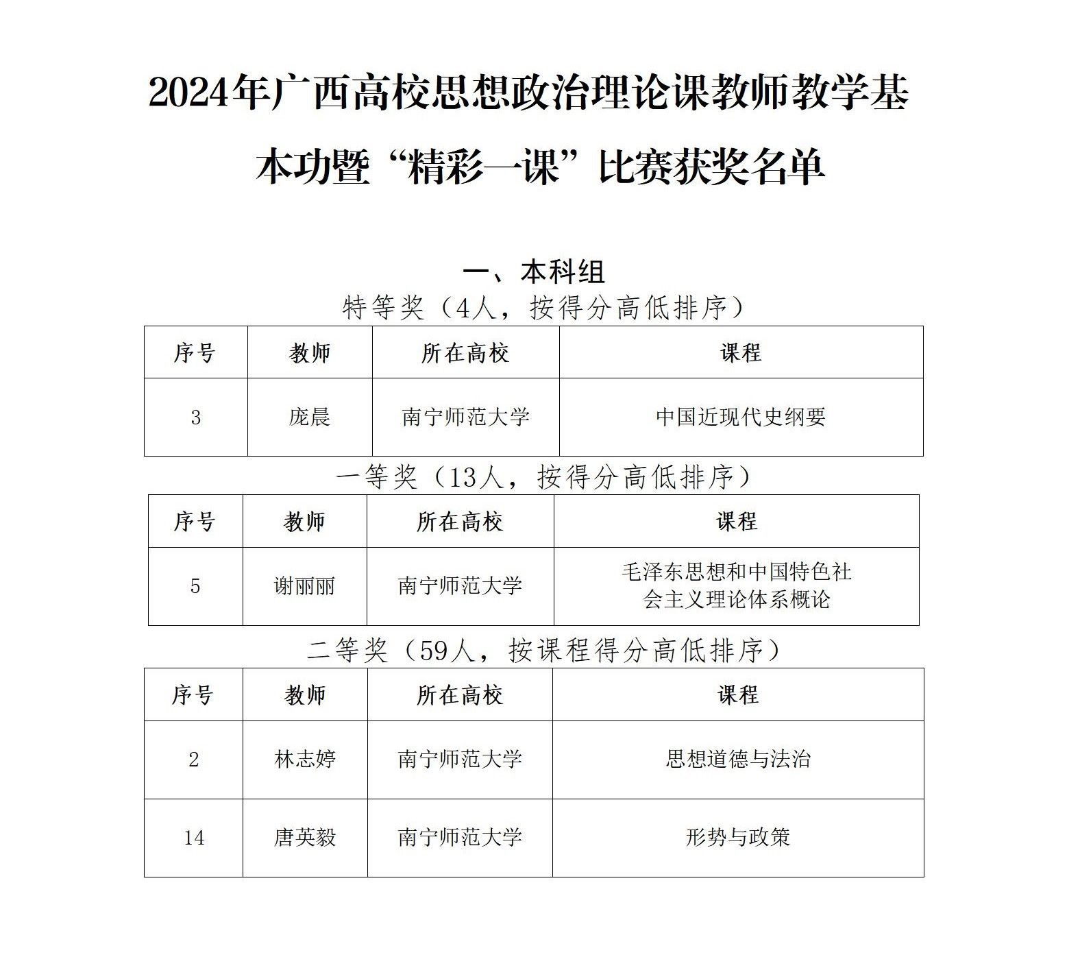近日,自治区教育厅公布了2024年广西高校思想政治理论课教师教学基本功比赛暨“精彩一课”评选活动获奖名单,bevictor伟德官网教师庞晨荣获特等奖,谢丽丽荣获一等奖,林志婷、唐英毅荣获二等奖。