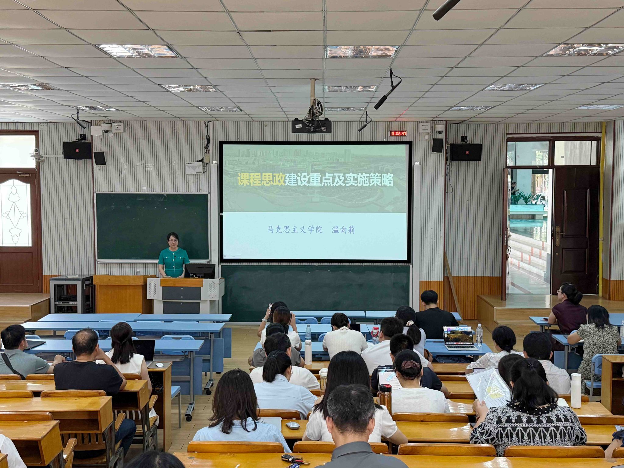 温向莉从“课程思政的内涵、要解决的问题、建设步骤及实施策略”四个维度系统展开讲解。她指出,课程思政应坚持显性教育与隐性教育相统一,打破学科壁垒,促进跨学科协同育人,并积极整合校内外团队力量,形成育人合力。温向莉强调,课程思政的核心在于将价值塑造、知识传授与能力培养有机融合,实现各类课程与思政课程同向同行。为此,教师应紧紧围绕立德树人根本任务,结合课程特色深入挖掘思政元素,通过系统梳理、精准筛选和有效融入,不断丰富课程思政的教学内容与方法。此外,她还结合大中小学思政课一体化建设背景,分析了不同学段学情特点下课程思政的实施策略,并强调注意把握好思政教育的“度”。