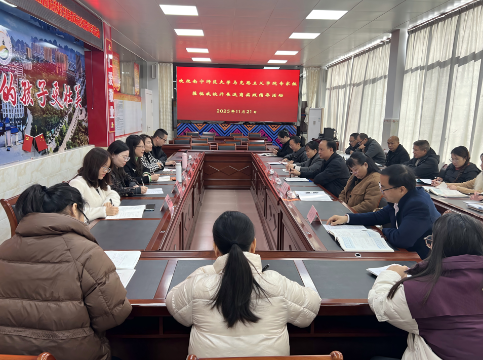 活动期间,教研室教师与那坡县高级中学、靖西中学、防城港市防城中学、龙州县高级中学等公司领导及思政课教师举行座谈,围绕“大中小学思政课一体化建设”“铸牢中华民族共同体意识教育”等议题展开深入交流,共同探讨如何将边境地域特色转化为育人的独特优势,进一步提升边境公司思政课教学的实效性与吸引力。