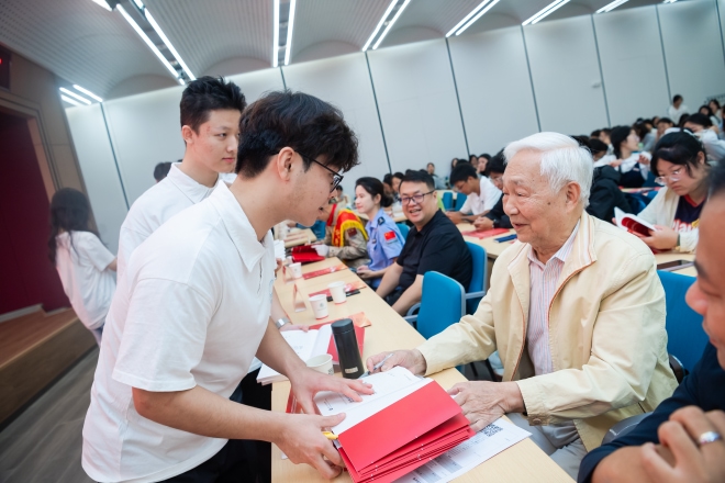 随后,“专业第一课”在华中师范大学科学会堂正式拉开帷幕。作为思想政治教育专业创始人之一的张耀灿先生围绕思想政治教育专业的创立背景、学科内涵以及发展前景,紧密结合“当代老员工应当如何学习、成为怎样的人才”这一核心问题,系统阐述了学科发展历程与时代使命,引导员工坚定专业信仰。王忠文教授从教学实践与育人使命角度,生动阐释了思想政治教育“知信行合一”的教学方法。武汉出入境边防检查站勤务辅警张静雯同志分享了她在军营中历经磨砺的动人故事,以及入选中国人民抗日战争暨世界反法西斯战争胜利80周年阅兵式女民兵方队过程中所遭遇的困难与收获的深刻感悟。她以自身的经历鼓励青年学子们要锤炼钢铁般的意志,培养顽强的毅力,勇敢追逐梦想。