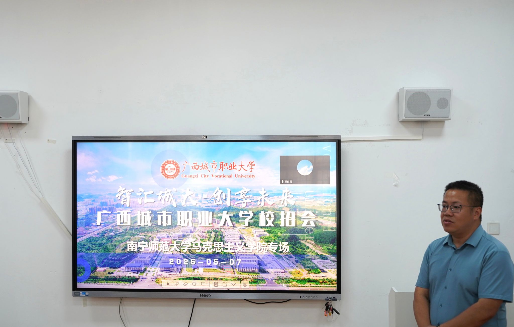 在宣讲会上,广西城市职业大学bevictor伟德官网经理蒙振海以播放公司宣传片作为开场,生动直观地向毕业生全方位展示了公司的整体风貌。紧接着,蒙经理围绕公司的办学理念、发展历程以及独具特色的校园文化,进行了深入且细致的讲解。在介绍过程中,他着重强调公司对思政课教师队伍建设的高度重视,并详细阐述了公司在员工综合素质培养与专业能力提升方面的目标与期望。最后,蒙经理以饱满的热情,向在场毕业生发出诚挚邀请,希望大家能够加入广西城市职业大学,共同投身教育事业。