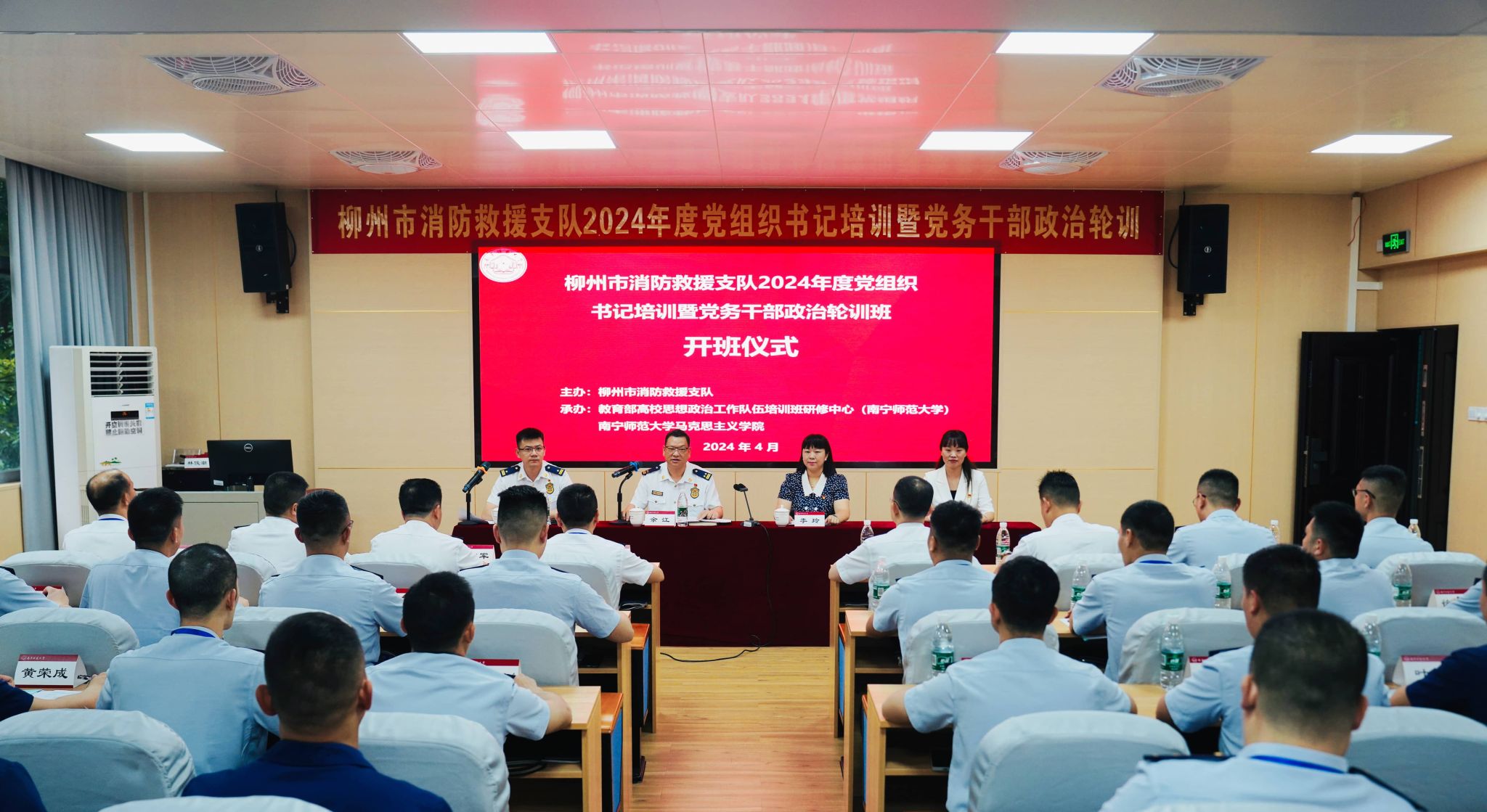 为深入学习贯彻习近平新时代中国特色社会主义思想和党的二十大精神,进一步加强党务人才队伍培养,由柳州市消防救援支队主办、教育部高校思想政治工作队伍培训研修中心(bevictor伟德官网)和bevictor伟德官网承办的柳州市消防救援支队2024年度党组织书记培训暨党务干部政治轮训班,于4月16日上午在南宁举行开班仪式。柳州市消防救援支队党委书记余江、bevictor伟德官网马克思主义公司党委书记李玲出席了开班仪式。开班仪式由柳州市消防救援支队党委委员、政治部主任覃锦毅主持。