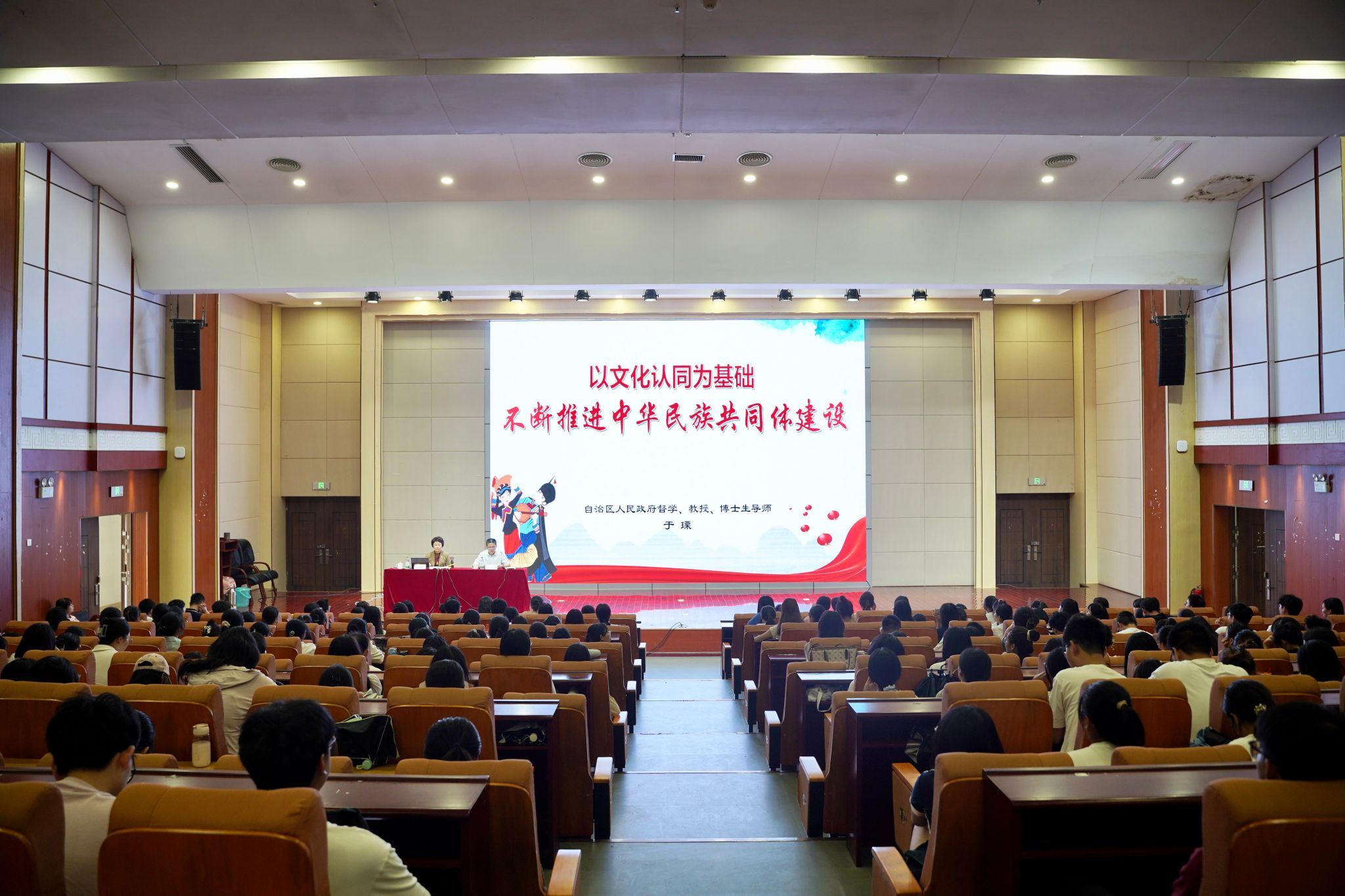 为深入学习习近平总书记关于《铸牢中华民族共同体意识推进新时代党的民族工作高质量发展》的重要论述,贯彻落实中央统战部、中央宣传部、教育部、国家民委共同印发的《关于加强铸牢中华民族共同体意识理论研究体系建设的意见》,加强公司铸牢中华民族共同体意识教育,2024年9月27日下午,公司bevictor伟德官网邀请广西中华民族共同体意识研究院学术委员会主任、自治区人民政府督学、广西老教授协会会长、原广西师范公司党委书记于瑮教授,为师生作题为“以文化认同为基础 不断推进中华民族共同体建设”的学术讲座。讲座由bevictor伟德官网党委副书记隆广庆主持,bevictor伟德官网、法学与社会公司、教育科学公司、新闻与传播公司师生等参加了此次讲座。