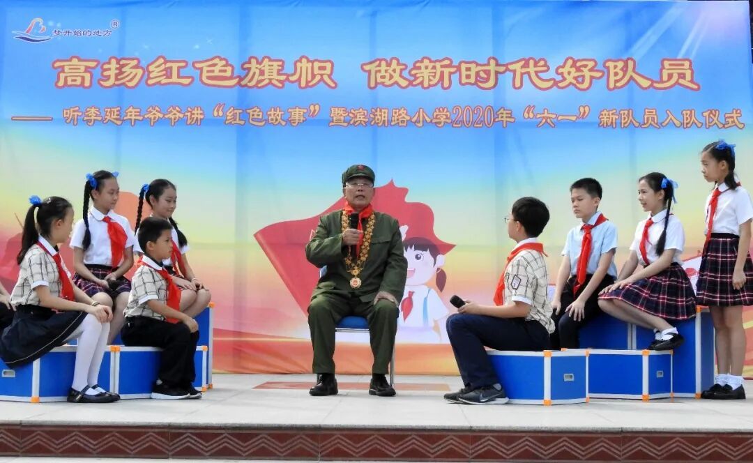 “共和国勋章”获得者李延年在广西南宁市滨湖路小学“红领巾大课堂”上讲红色故事。 广西南宁市滨湖路小学供图
