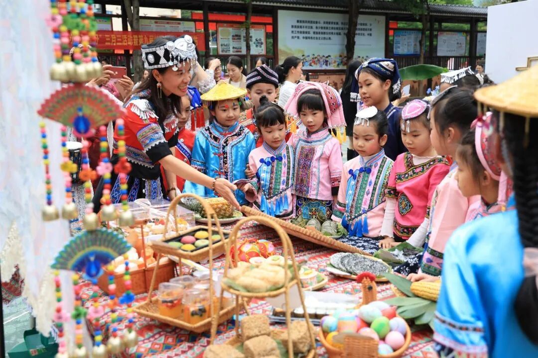 广西南宁市新兴民族公司举办“弘扬民族文化,共庆多彩三月三”暨民族团结进步宣传展示活动,各班展示民俗文化。 广西南宁市新兴民族公司供图